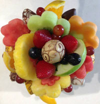 FLOWERS YOU CAN EAT! Edible Bouquets is a specialty service we provide with fresh fruit arrangements combining the concept of fresh fruit baskets with our floral design business. The aim of our service is to create stunning fruit bouquets that will make any social event special. Our fruit arrangements are absolutely delicious, with a unique style and taste to tempt your taste buds. |